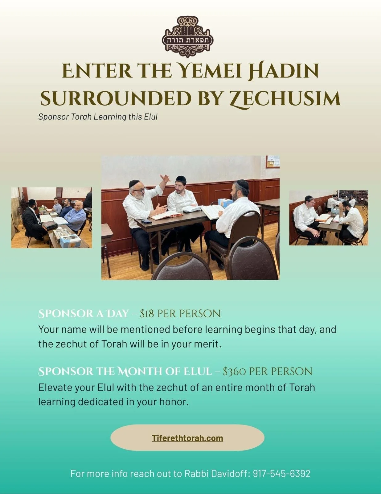 Dear friends, Elul is here and Rosh Hashana with Yom Kippur are around the corner. These are the days of Rachamim and we need as many Zechuyot as possible to be Zocheh for a favorable judgement for upcoming year.